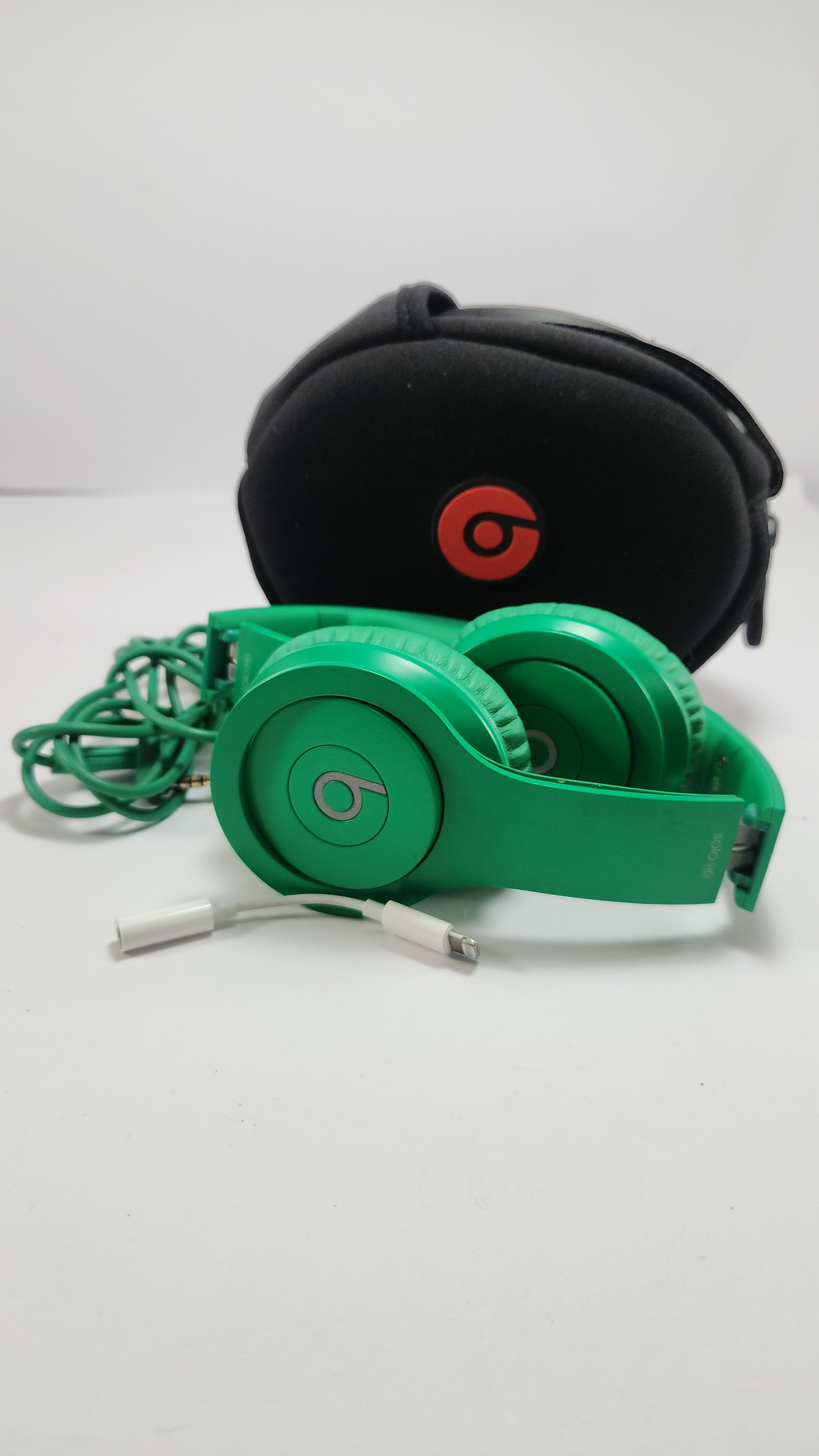 Audífonos originales Beats by Dr. Dre Solo HD color verde, con un diseño moderno, sonido envolvente y graves potentes. Incluyen estuche rígido de transporte y adaptador para dispositivos iPhone (lightning).
