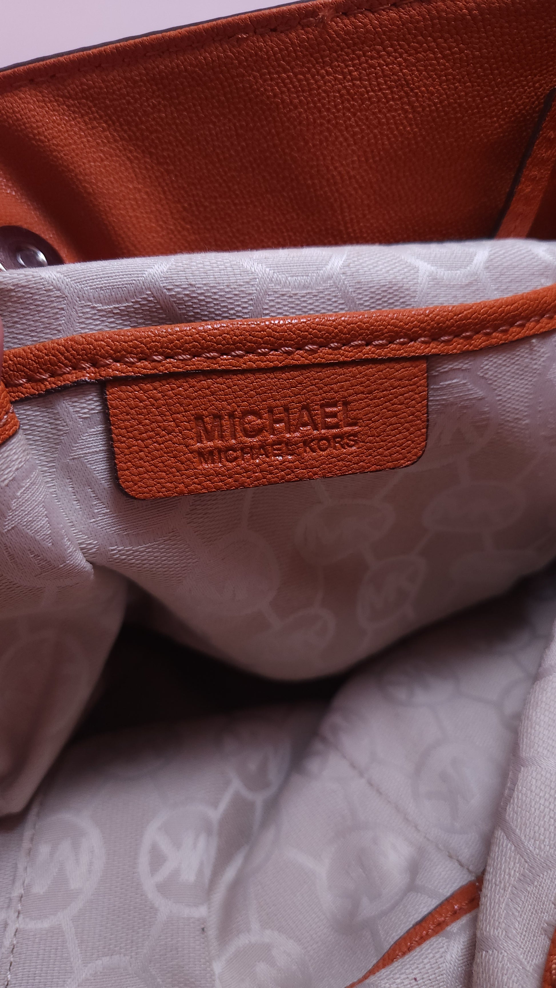 Destaca con esta espectacular bolsa satchel estructurada de Michael Kors en un vibrante tono naranja. Fabricada en piel de alta calidad, ofrece asas dobles y correa larga desmontable para llevarla como prefieras. Su diseño espacioso es perfecto para organizar tus pertenencias con estilo y practicidad, ideal para complementar looks casuales o más formales.