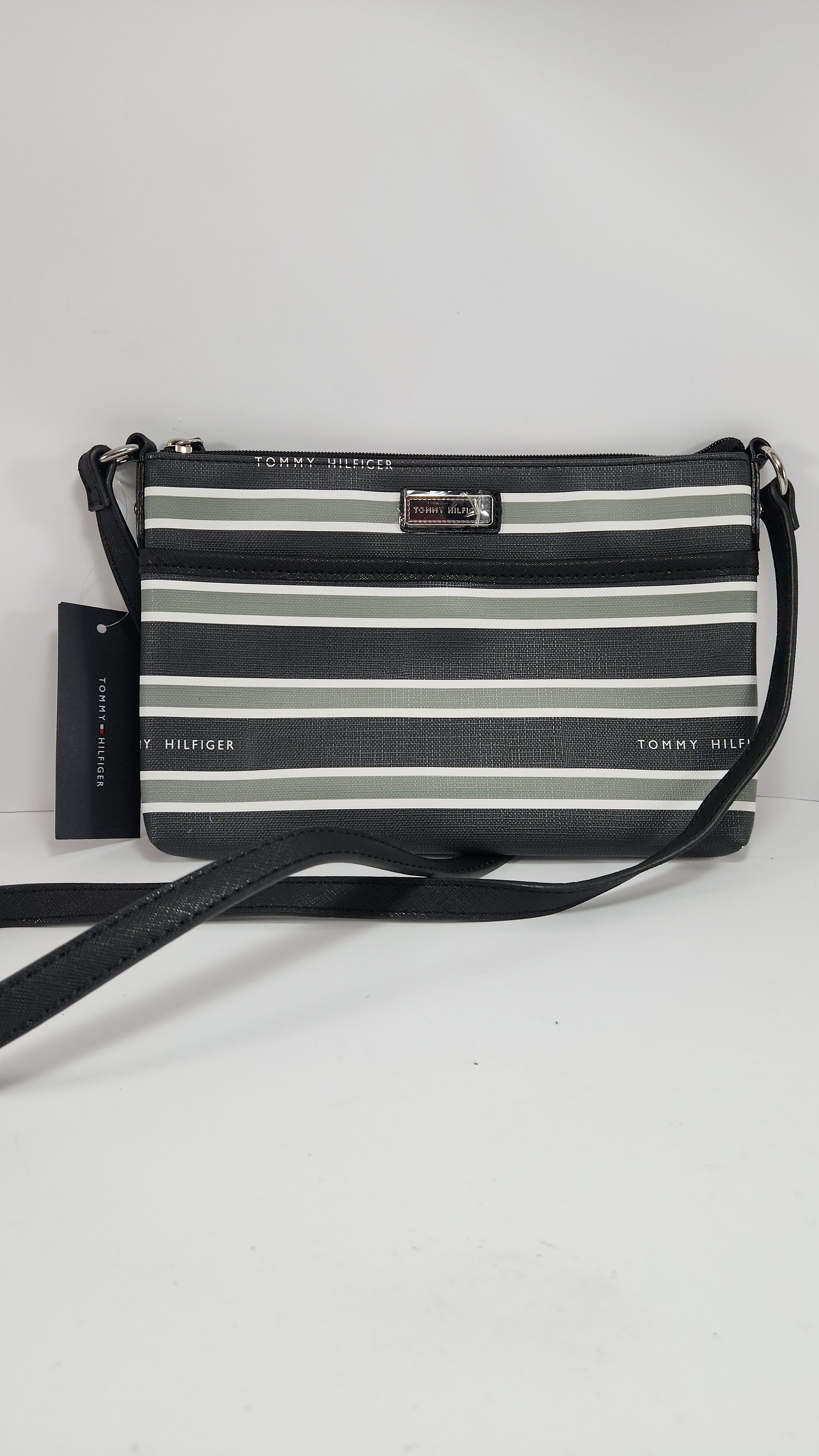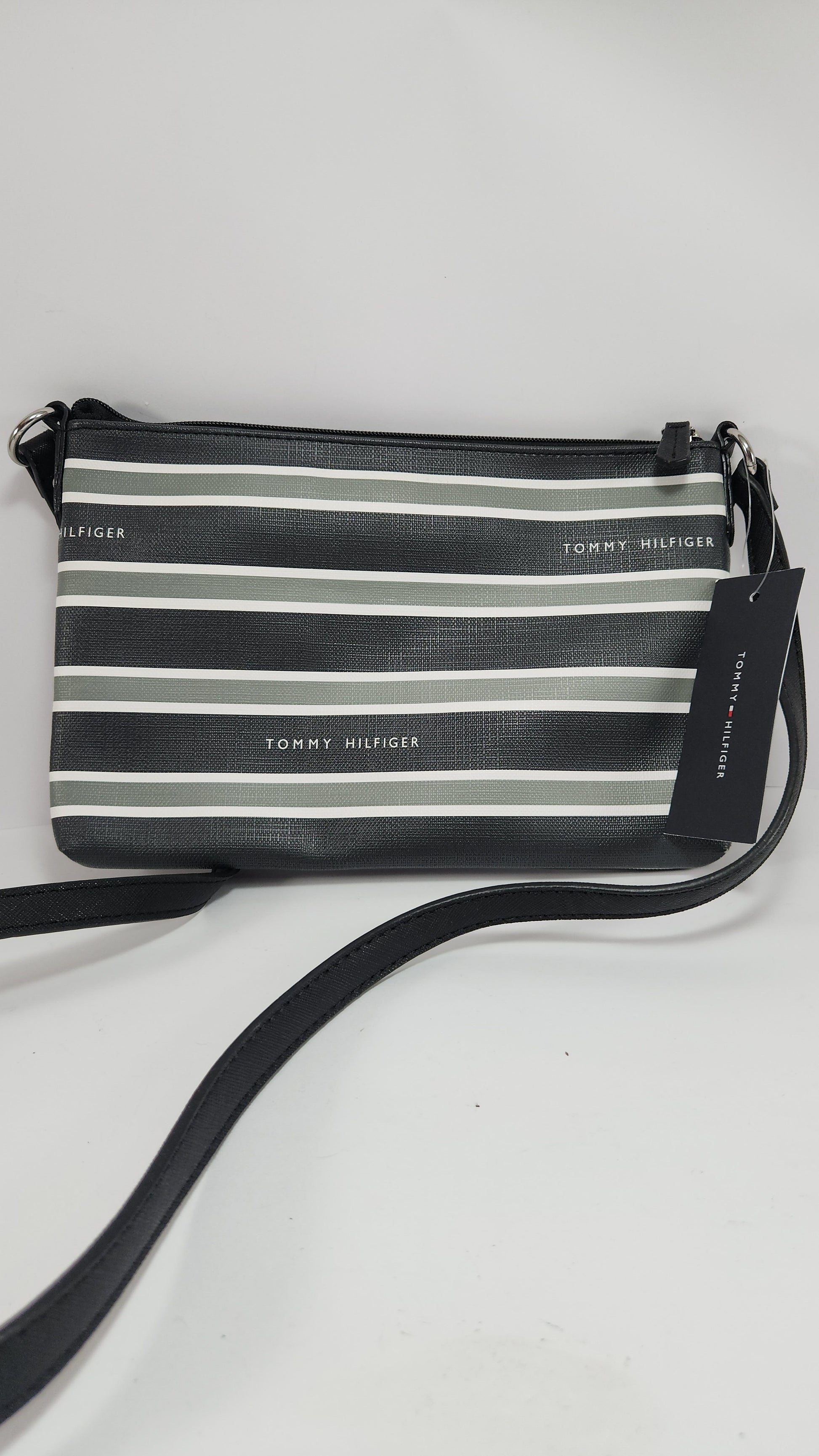 Bolsa cruzada Tommy Hilfiger original, con diseño de rayas y logo metálico. Compacta, moderna y perfecta para toda ocasión.
