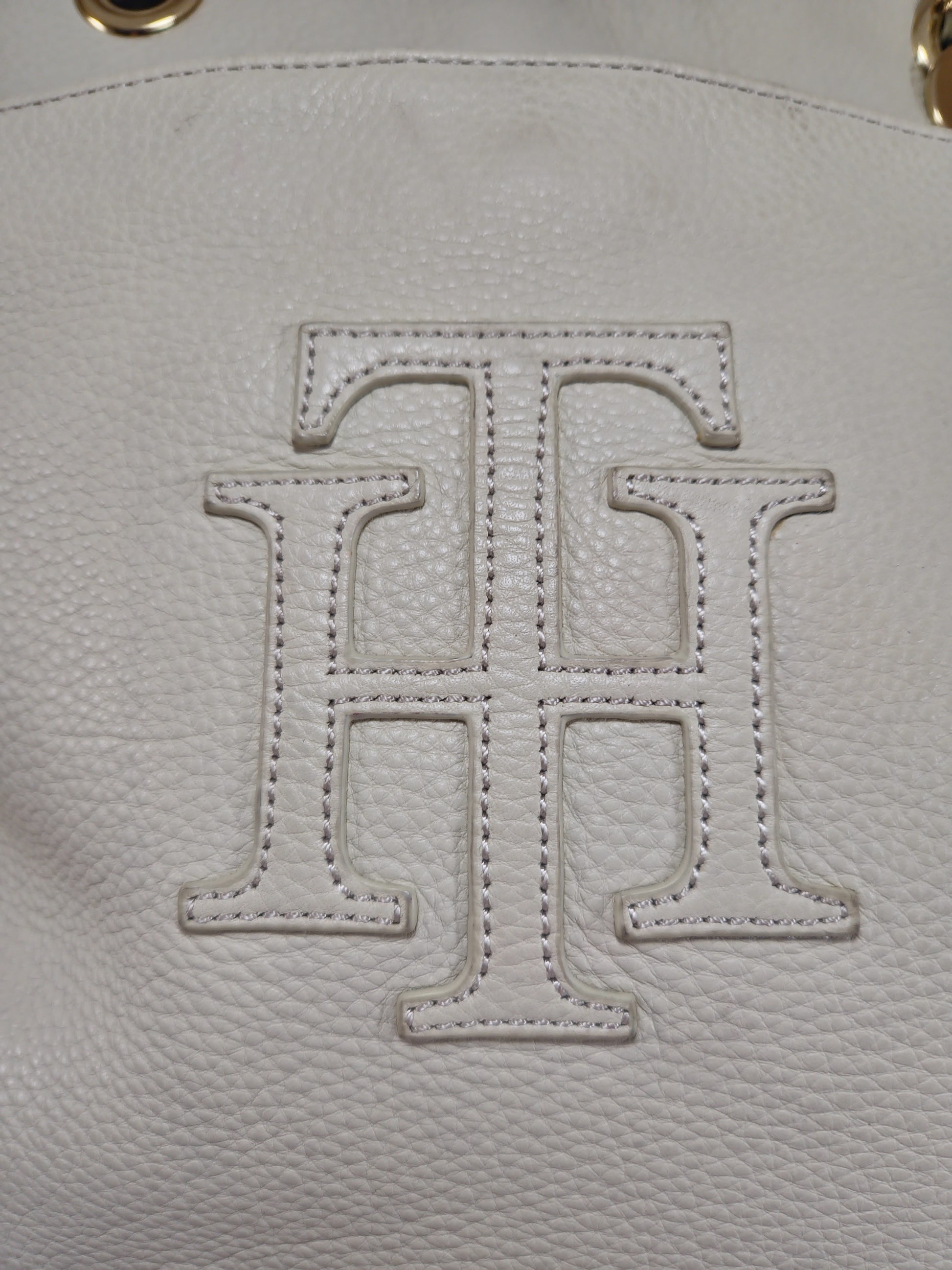 Hermosa bolsa de hombro Tommy Hilfiger para mujer, elaborada en piel sintética color crema, con el icónico monograma TH al frente en relieve y charm metálico de la marca. Asas largas y resistentes para un uso cómodo. Su diseño espacioso es ideal para llevar todo lo que necesitas con estilo y sofisticación.
