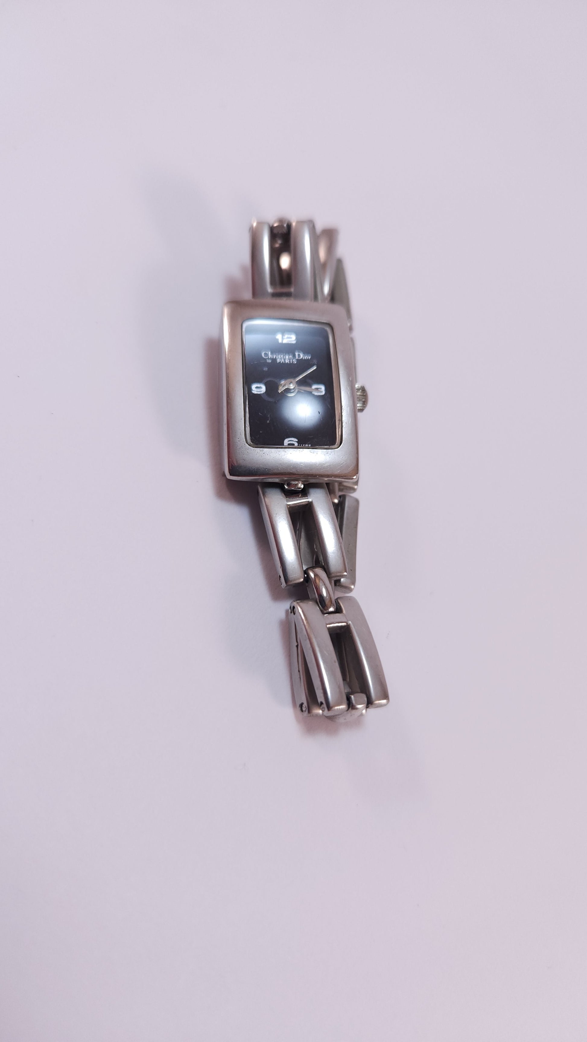 Este sofisticado reloj Christian Dior refleja la esencia de la elegancia parisina con su diseño rectangular, carátula negra minimalista y brazalete de acero inoxidable. Un accesorio refinado ideal para quienes buscan un toque clásico y atemporal en su colección.