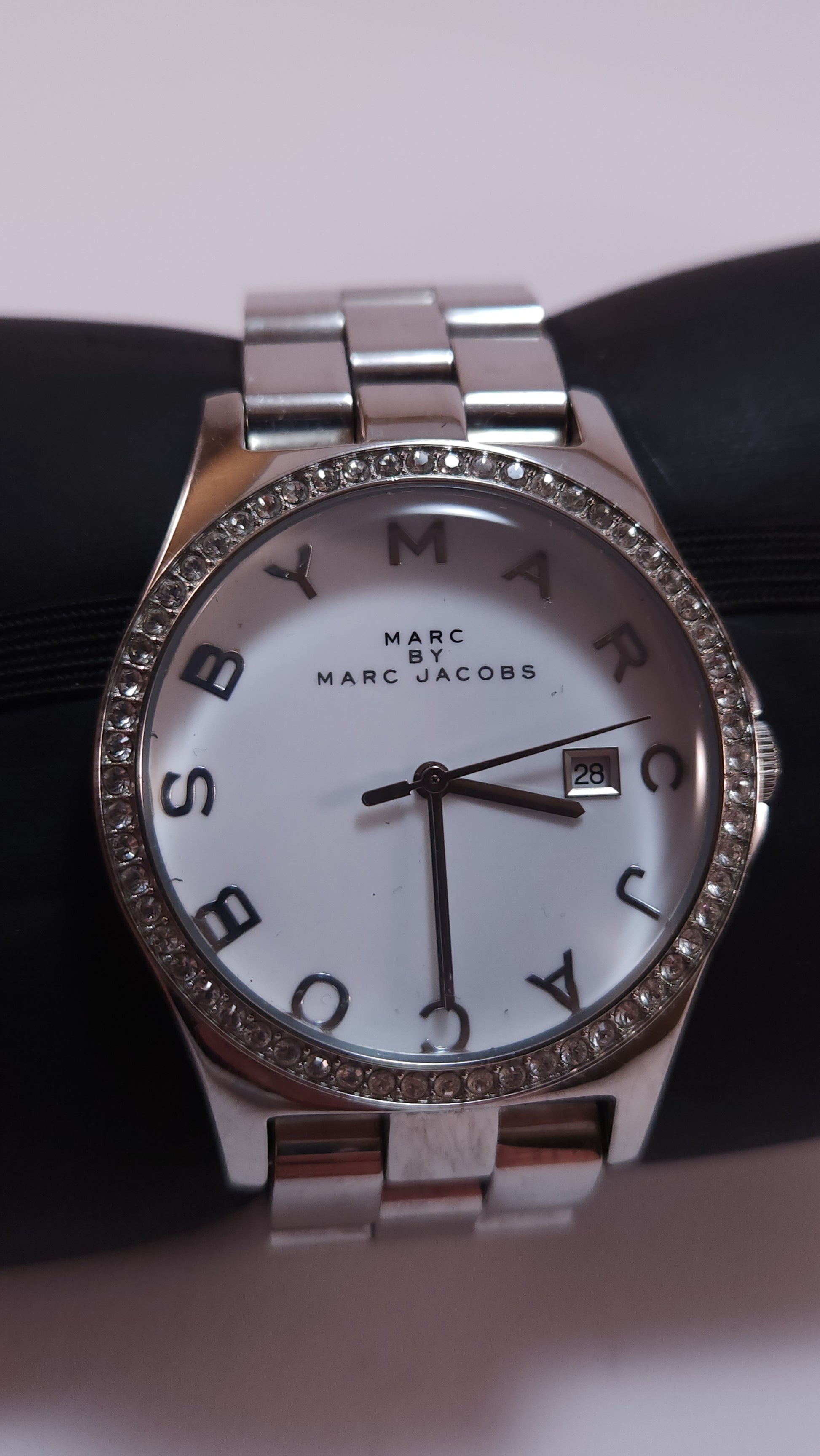 Este elegante reloj Marc by Marc Jacobs combina un diseño moderno con un toque de glamour gracias a los cristales incrustados en el bisel. La carátula blanca destaca con las letras “BY MARC JACOBS” como indicadores de hora, creando un look único y sofisticado, ideal para cualquier ocasión.