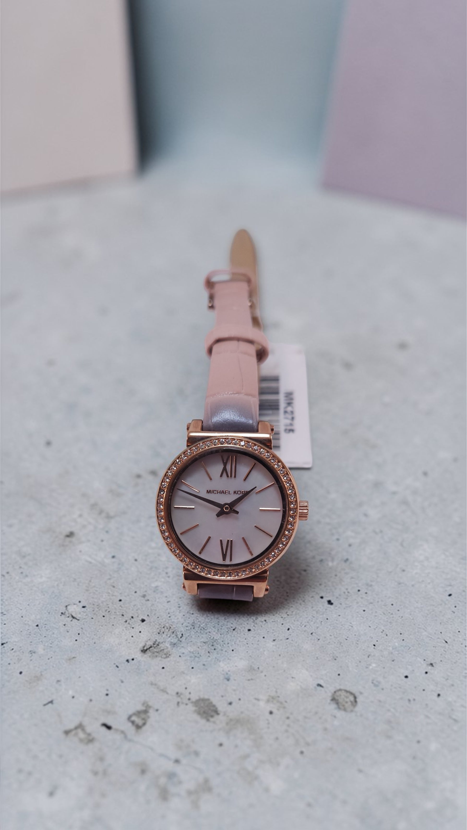 Añade un toque de sofisticación a tu outfit con este hermoso reloj Michael Kors modelo MK2715, con caja en tono rose gold decorada con cristales y correa de piel en color nude. Su esfera minimalista con números romanos aporta un look clásico y elegante, ideal para cualquier ocasión.