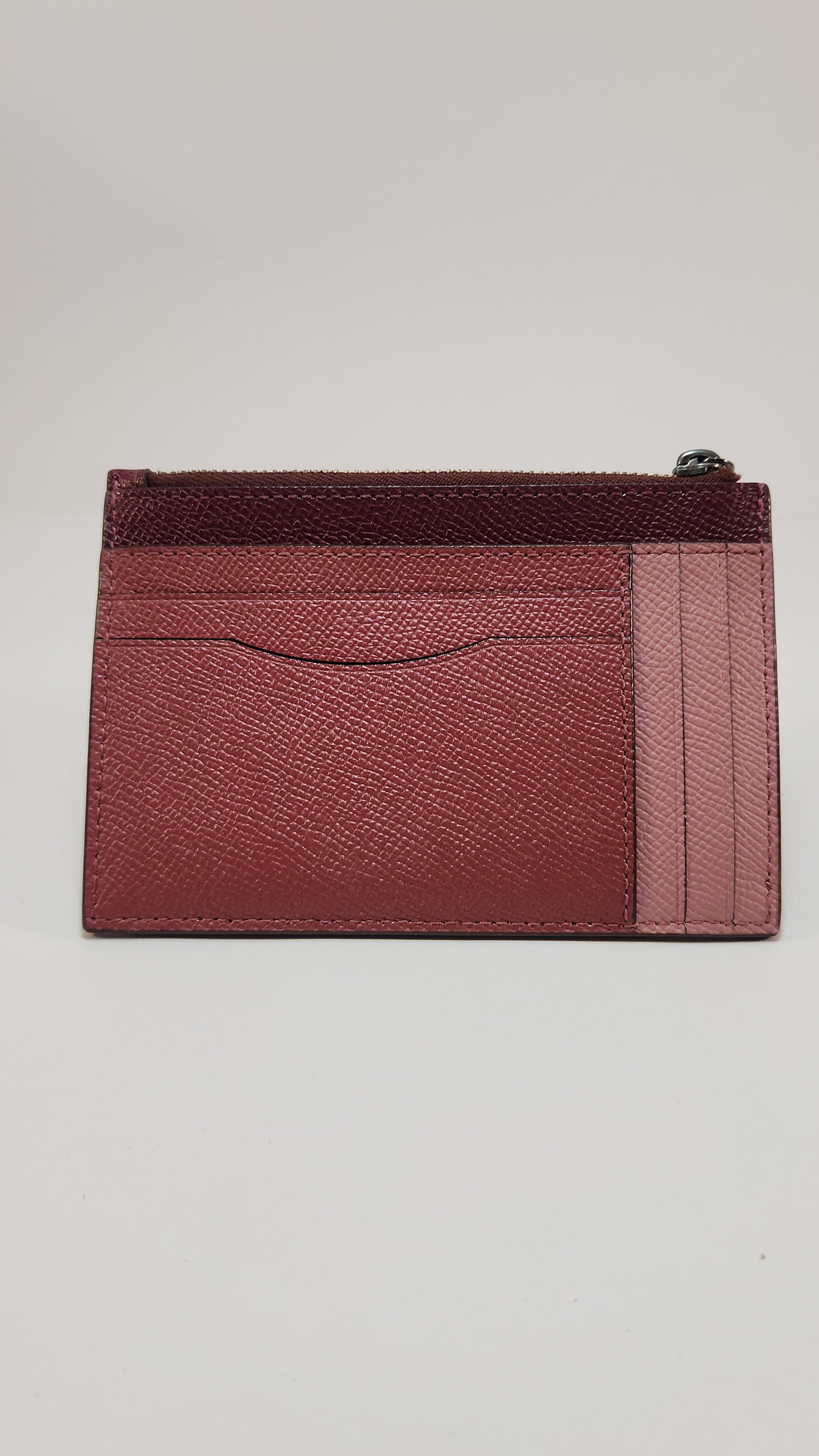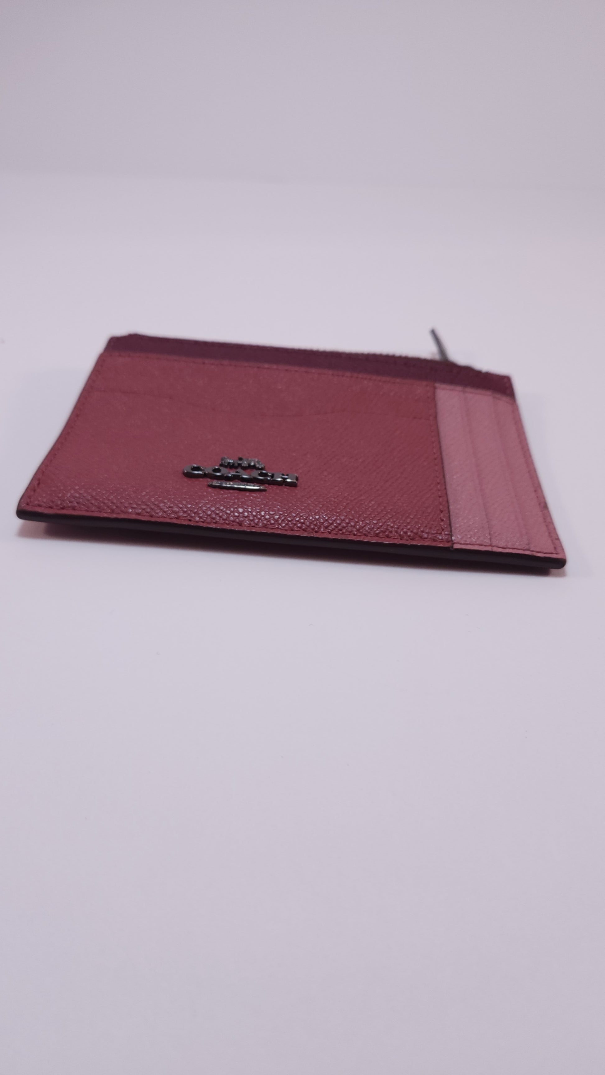 📏 Modelo: Coach Women's Burgundy Leather Zip Card Case Wallet